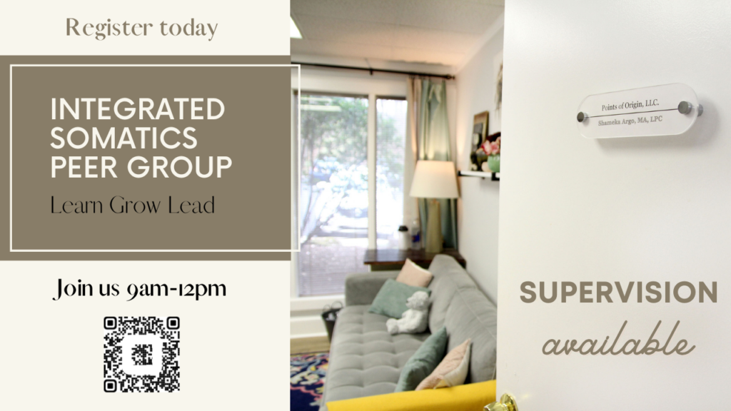 Integrated Somatics Peer Group is a welcoming space for clinicians at all stages of practice who desire deeper presence, confidence, and embodiment in their work. Together, we explore somatic integration, intentional self-disclosure, and peer consultation. LPCAs may apply hours toward group supervision, while all clinicians are invited to grow, connect, and invest in their professional development within a supportive community.