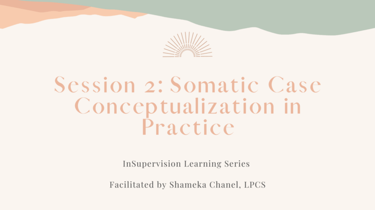 The InSupervision Series is designed to expand your clinical capacity and strengthen your embodied presence while cultivating secure attachment practices. Across six sessions, you step into reflective supervision, apply somatic case conceptualization, map body cues to behavior, explore the connection between somatic truth and narrative, integrate trauma-informed pacing and check-in tools, and bring it all together through live consultation and case review. This series prepares you not only with skills but with the confidence and resilience to transform how you practice, lead, and connect.  Access the overview here.